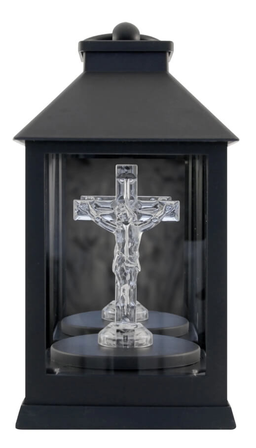 Led lampáš kríž v čiernej farbe, elegantná dekoratívna sviečka